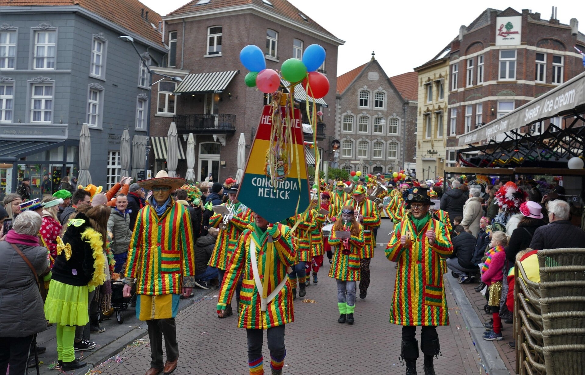 Maandag 20 februari 2023 was de carnavalsoptocht in Roermond. Zoals gewoonlijk was harmonie Concordia erbij om de optocht te openen, dit keer vooraf gegaan door de Roermondse stadsreus Sjtuf. Ofschoon we met ons korps vooraan in de optocht liepen, hebben we erg vaak stilgestaan. Dat kwam omdat achter ons in de optocht grote wagens niet goed de bochten konden nemen in de smalle straten van de Roermondse binnenstad. De organisatie wilde voorkomen dat er grote gaten in de optocht zouden vallen. Daarom werd de optocht steeds weer stilgezet. En zo kon het gebeuren dat we maar liefst één uur en drie kwartier gelopen hebben. Het was wel weer mooi om mee te maken. Veel volk langs de kant. Concordia speelde vooral Limburgse en Roermondse carnavalsmuziek. Dat viel bij het publiek goed in de smaak.