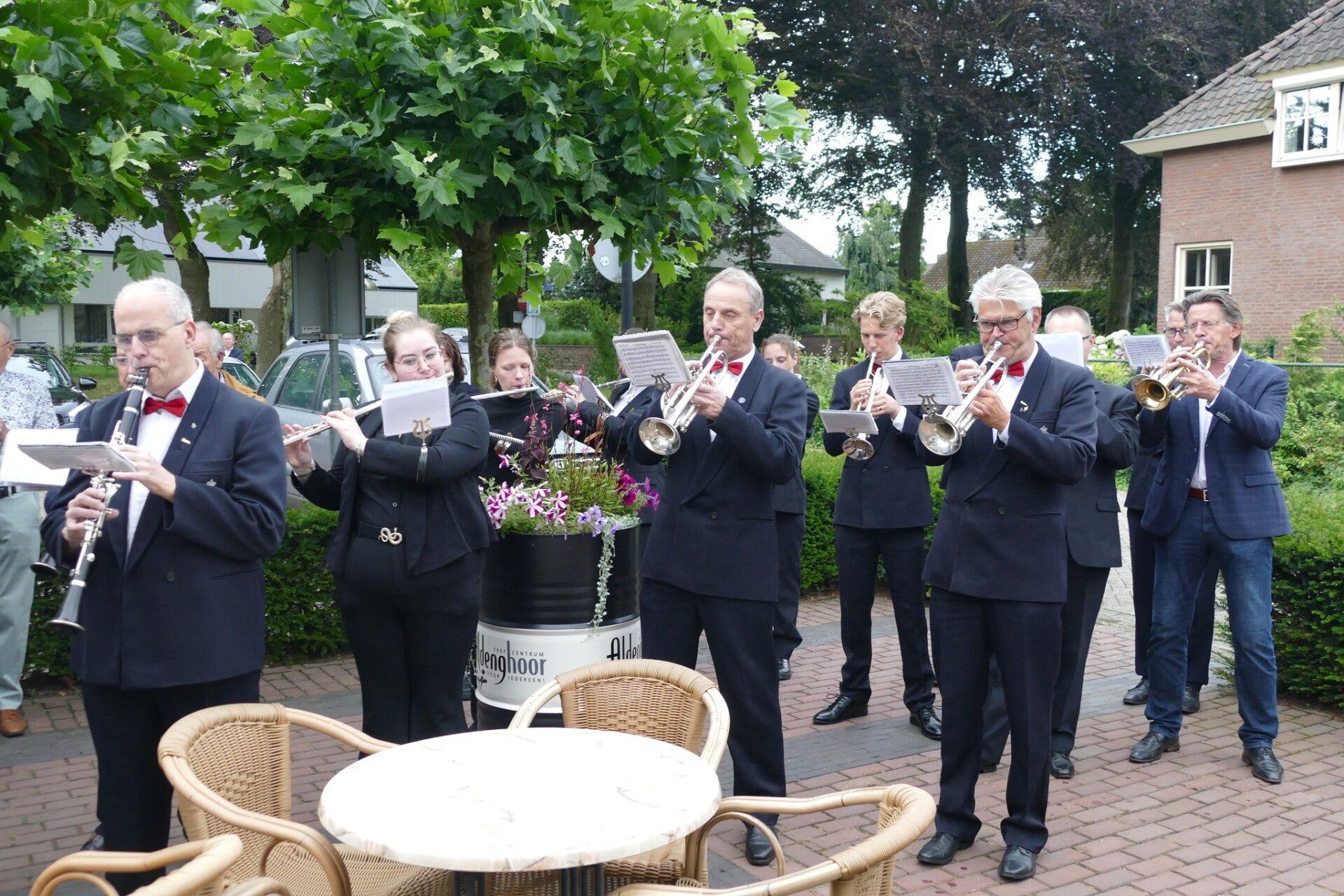Op vrijdag 12 juli 2024 ging Harmonie Concordia op bezoek in Haelen. Met Harmonie Philomena uit Haelen vormden we samen -ondanks de zomervakantie- een heel behoorlijke harmonie. De aanleiding was een heel feestelijke: WIel en Mien Schreurs waren 50 jaar getrouwd. En aangezien beiden zowel in Haelen als in Melick lid zijn, kregen zij een mooie serenade. Het was erg fijn om dit voor Wiel en Mien te kunnen doen, van harte proficiat!