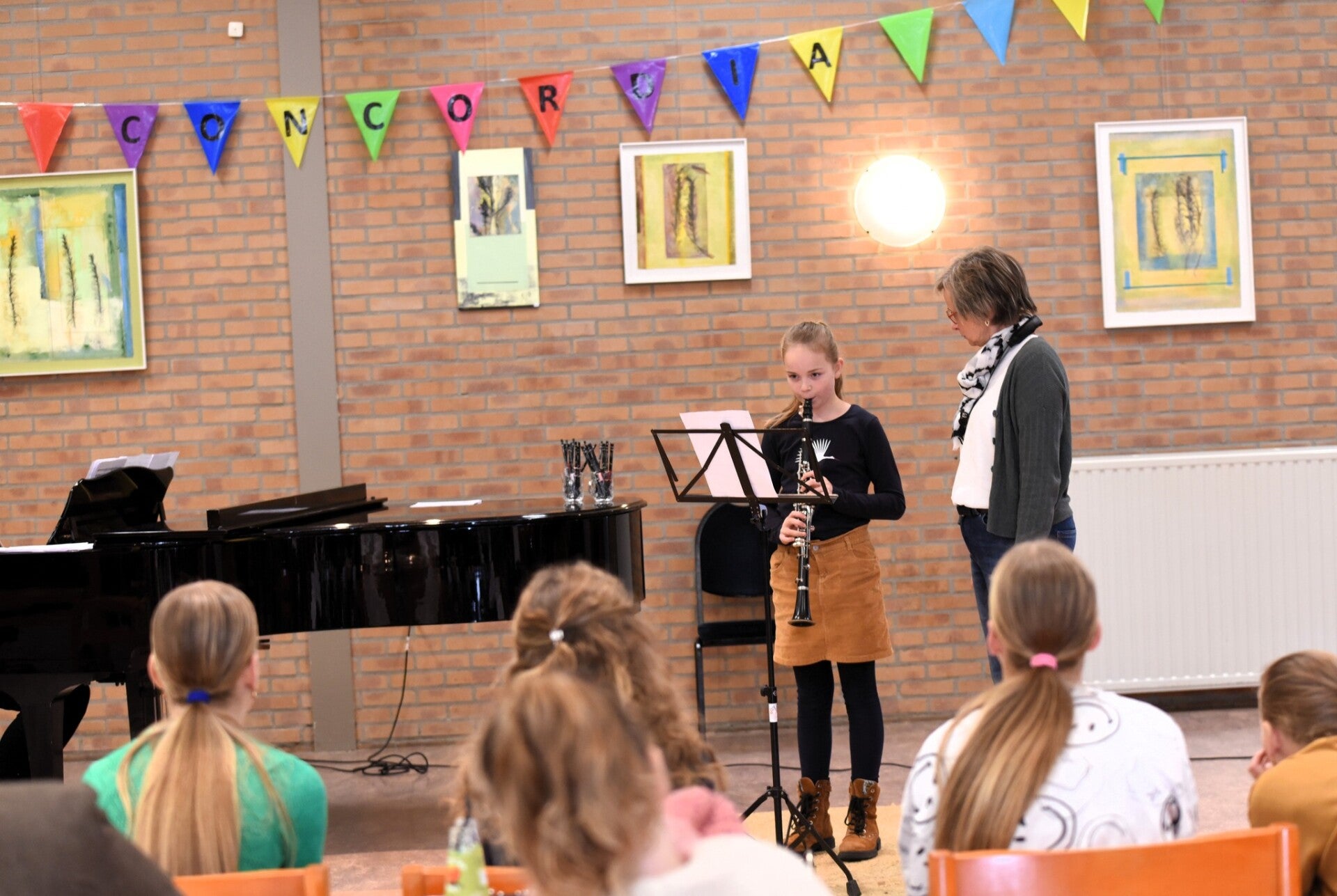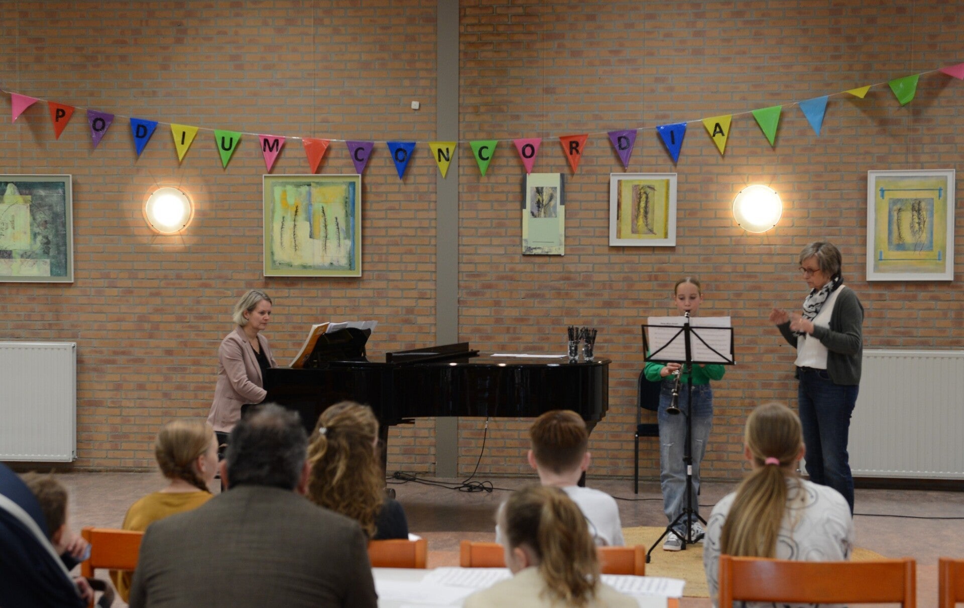 Op zondag 3 november 2024 lieten jeugdleden van harmonie Concordia -onder de noemer Podium Concordia- horen wat ze zoal in hun mars hebben. En dat was heel wat! Van 10.30 tot 14.00 uur is er hartverwarmend gemusiceerd. Veel ouders, broertjes en zusjes en opa's en oma's kwamen luisteren. De presentatie vond op een leuke manier plaats door Simone Wolters-Geene, de pianobegeleiding was in goede handen van Jolanda Wolters. Een jury kwam er niet aan te pas. Het was gewoon ongedwongen musiceren en genieten!